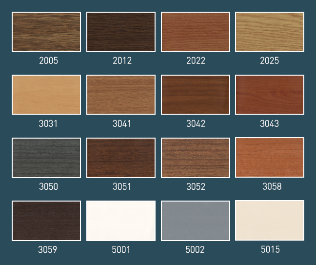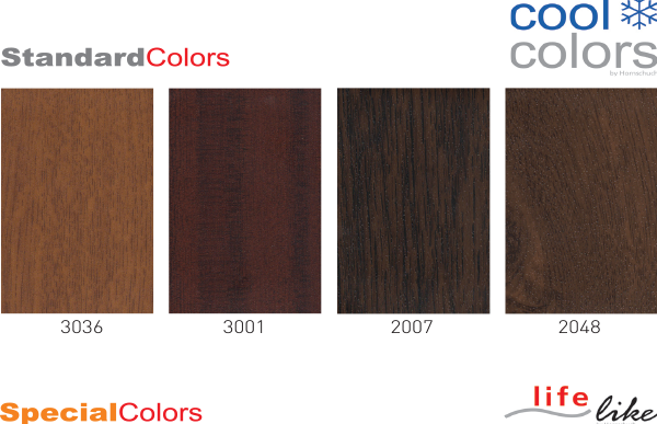 Dilerseniz, Schönline kapı ve pencerelerinizi, evinizi sıcak bir ortama dönüştürecek, hiç boya ve cila gerektirmeyen ahşap görünüşlü çok zengin renk seçenekleri sunan “Cool Colors” akrilik film kaplı olarak sipariş edilebilirsiniz.
